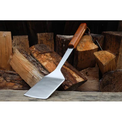 De Turnpike BBQ RVS Barbecue spatel is de perfecte tool voor elke BBQ-liefhebber. De spatel is gemaakt van hoogwaardig roestvrij staal en heeft een teak hardhouten handvat dat comfortabel in de hand ligt. Het stevige ontwerp van de spatel maakt het gemakkelijk om je vlees om te flippen, te draaien en te verplaatsen. En dat allemaal terwijl 'ie er donders goed uitziet. Dat is ook wat waard!