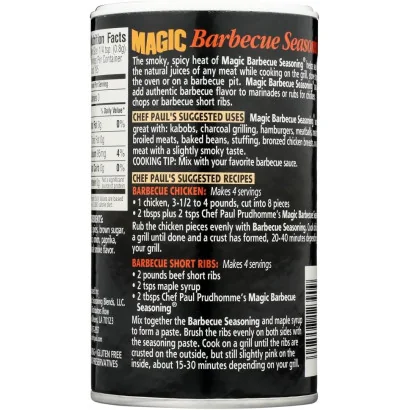 Betreed de wereld van ultieme BBQ-expertise met de Magic Barbecue Seasoning van Paul Prudhomme. Dit magische kruidenmengsel brengt de culinair kunstenaar in iedereen naar boven. Of je nu een beginner bent of een doorgewinterde grillmaster, deze kruidenmix til je barbecue naar een hoger niveau. Ontdek de balans van smaken die elk gerecht naar een smaakvolle compositie transformeert. Met Magic Barbecue Seasoning maak je van elke maaltijd een feestje voor de zintuigen, ongeacht of je vlees, vis of groente grilt. Laat je inspireren door de rijke traditie van Paul Prudhomme en ervaar de magie op je bord!
