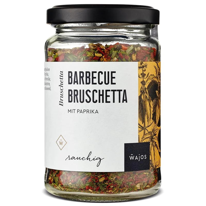 Zin in veelzijdige en gevarieerde bruschetta-recepten? Deze mix heeft een pittige en aangenaam gerookte smaak die zich onderscheidt van elke gewone barbecuesaus. Als bruschetta kruiden- of kruidenmix brengt onze barbecue bruschetta met tomaat, paprika, knoflook, jalapeños, uien, gerookt zout en vele geselecteerde kruiden een heerlijke explosie van smaak op het bord. Het kan worden gebruikt om het gegrilde voedsel op smaak te brengen of te bestrooien en ook gewoon als dip en saus – BBQ-saus is niet langer nodig. Ook lekker: in stoofschotels of klassiek op brood.