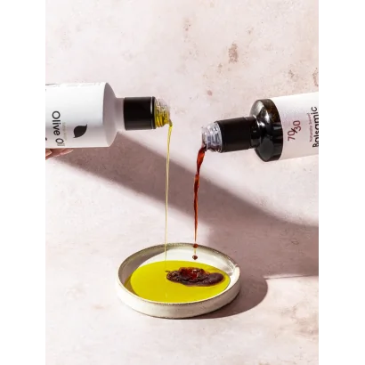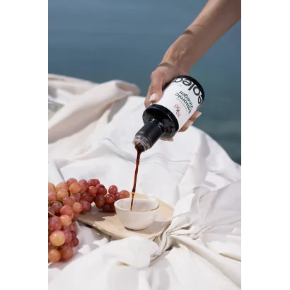 Deze Griekse Balsamic Vinegar, gemaakt van 70% gekookte druivenmost en 30% rodewijnazijn is van nature zoeter en rijk in anti-oxidanten. Deze unieke verhouding zorgt voor een rijke en complexe zoetheid met tonen van vijgen, stroop, kersen, chocolade en gedroogde pruimen.Geproduceerd van Griekse druiven van het eiland Samos en voor drie jaar gerijpt in Franse eiken vaten.