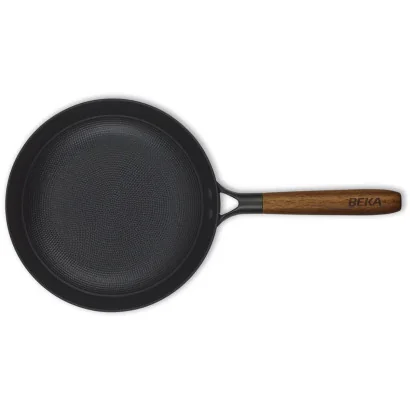 Het unieke binnenpatroon van de Beka Mandala pan zorgt voor een gelijkmatige verdeling van vetten, terwijl de duurzame geëmailleerde buitenkant garant staat voor een lange levensduur. In tegenstelling tot traditioneel gietijzer is deze pan aanzienlijk lichter, maar dankzij de constructie van 100% gerecycled geperst ijzer blijft hij toch stevig en robuust.