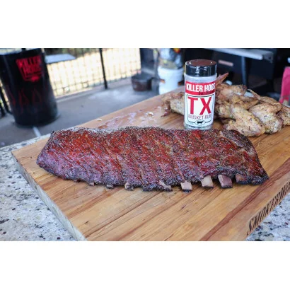 Maak kennis met de ultieme smaakmaker voor jouw BBQ-avonturen: de Killer Hogs - TX Brisket Rub. Deze geweldige rub is rechtstreeks geïmporteerd uit de BBQ-hoofdstad van de wereld, Texas, en belooft je brisket te transformeren in een meesterwerk. Of je nu een doorgewinterde pitmaster bent of een weekendgriller, deze rub biedt je de perfecte balans van kruiden en specerijen die een diepe, rijke smaak geven aan elke runderborst. Geen gedoe met ingewikkelde mengsels; laat Killer Hogs het ingewikkelde werk doen met hun beproefde recept, zodat jij je kunt concentreren op het maken van perfect gegrilde stukken vlees, keer op keer. Voel de trots van een Texaanse chef en til je BBQ-skills naar een hoger niveau.