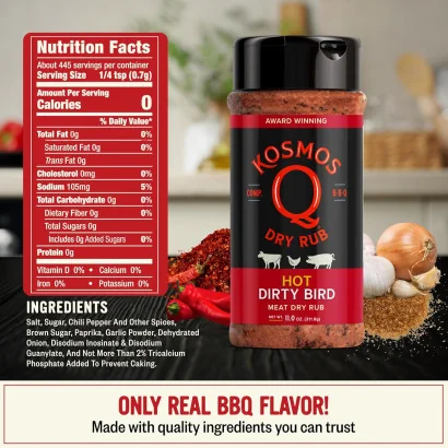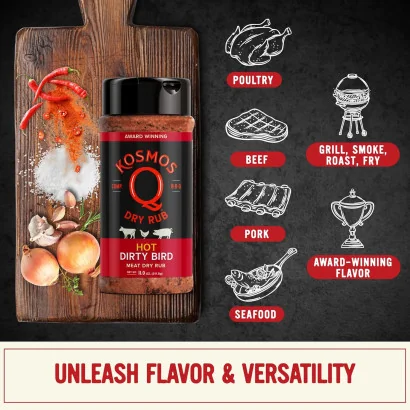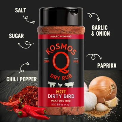 Soms moet je een beetje “dirty” spelen om te winnen. Met de Dirty Bird BBQ Chicken Rub van Kosmo’s Q geef je jouw kip die winnende smaak. Deze prijswinnende blend is ontwikkeld voor zowel backyard BBQ’ers als wedstrijdteams die nét dat stapje extra willen zetten.